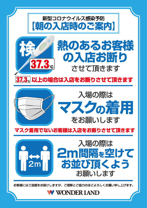 当店は徹底的な感染防止対策を実施しておりますので安心してご来店下さいませ。